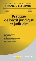 Florence Benoit, Auteur ; Olivier Benoit, Auteur | Levallois-Perret (Hauts-de-Seine) : F. Lefebvre | 2012Ni recueil de consultations ni traité de procédure, cet ouvrage propose un aide concrète, méthodologique et stylistique, à la rédaction des écrits juridiques et judiciaires